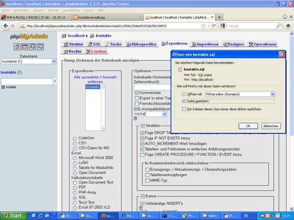 2) Datenbank-/Tabellen (Sicherung über Dumps) - Datenbanken / Tabellen sichern und wiederherstellen