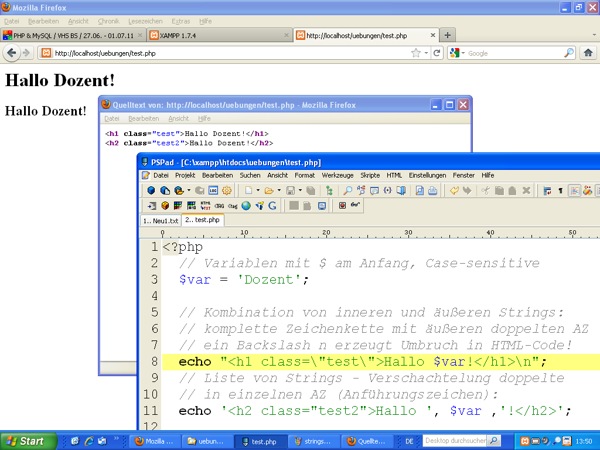 http://localhost/uebungen/test.php - erstes Testen im Browser