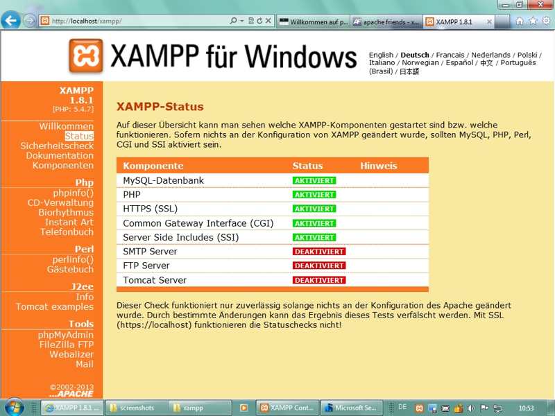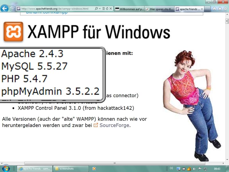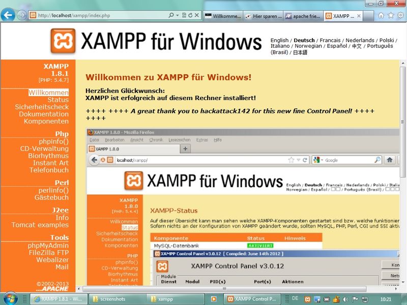 in Seminar: aktuelle Version 1.8.1 mit Apache 2.4.3, MySQL 5.5.27, PHP 5.4.7, phpMyAdmin 3.5.2.2
