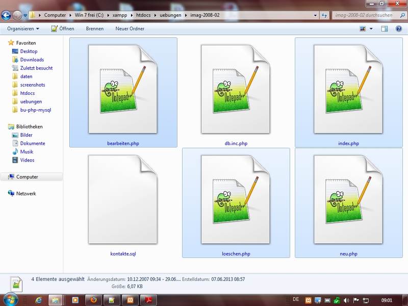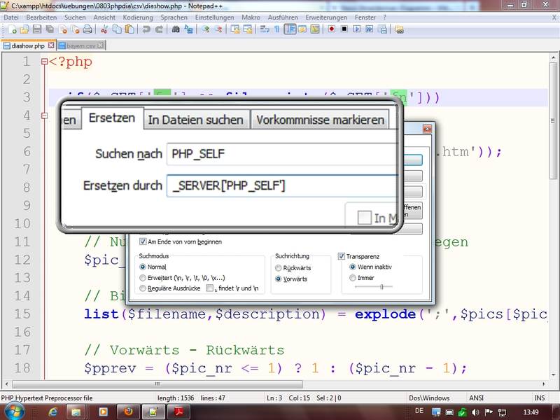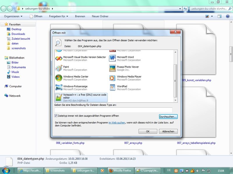 Über Kontextmenü auf PHP-Datei den Editor Notepad++ als Standardprog zum Öffnen eingestellt - Intermezzo: