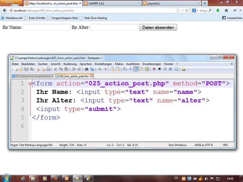 Übungsordner:C:\xampp\htdocs\test(entspricht http://localhost/test/)