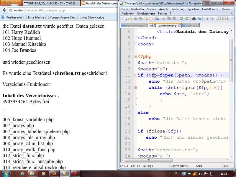 file (und wieder erhalten wir ein Array!), file_exists (prüft Existenz einer Datei - siehe auch unten Diashow)