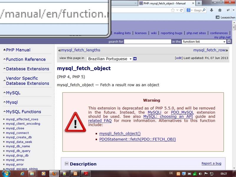 Im Diashow-Skript wird dann Funktion mysql_fetch_object genutzt - eine gute Darstellung mit prozeduraler MySQL Technik (ab morgen dann objektorientierte "verbesserte" MySQLI Technik) finden Sie in der PHP-Hilfe unter diesem Link - SQL (Structured Query Language - Online Dokumentation zu MySQL unter dev.mysql.com/doc)
