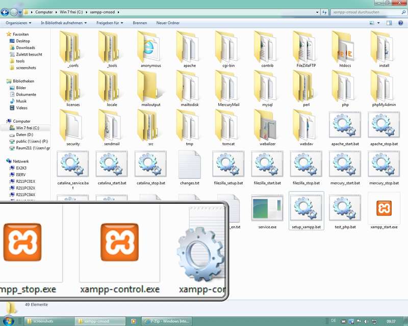 Selbstentpackendes XAMPP-Archiv (.exe) inC:\xampp-cmsod\...entpacken - so sind keinerlei Konfigurationen vorzunehmen