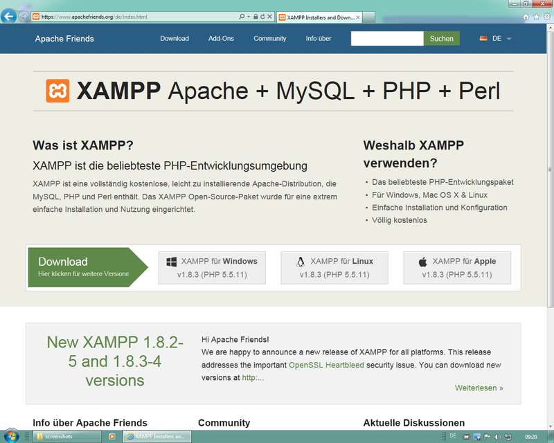 Empfehlung: XAMPP (Bitte nicht in Produktionsumgebungen, sondern nur zu Testzwecken einsetzen)