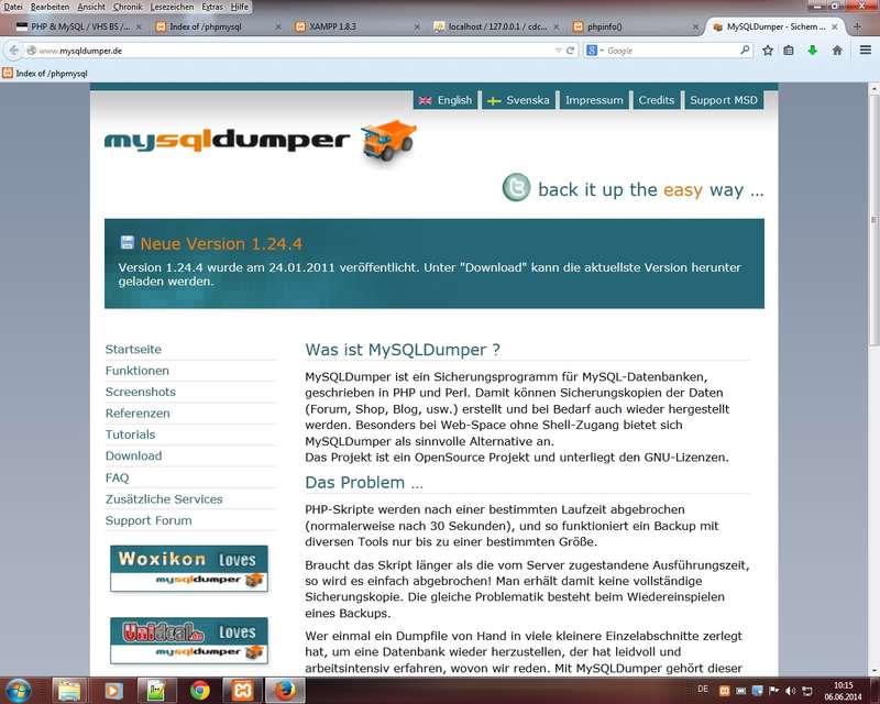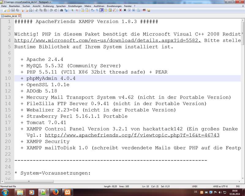 in Seminar: ich stelle meinen Teilnehmern (TN) eine aktuelle Version 1.8.3-4 mit Apache 2.4.9, MySQL 5.6.16, PHP 5.5.11, phpMyAdmin 4.1.12