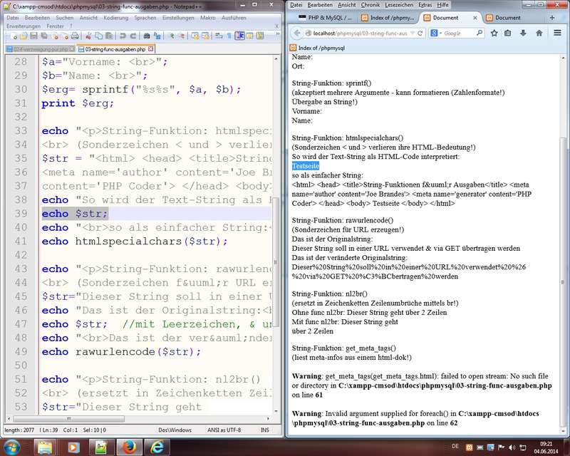 Über Kontextmenü auf PHP-Datei den Editor Notepad++ als Standardprog zum Öffnen eingestellt - PHP-Hilfe nutzen
