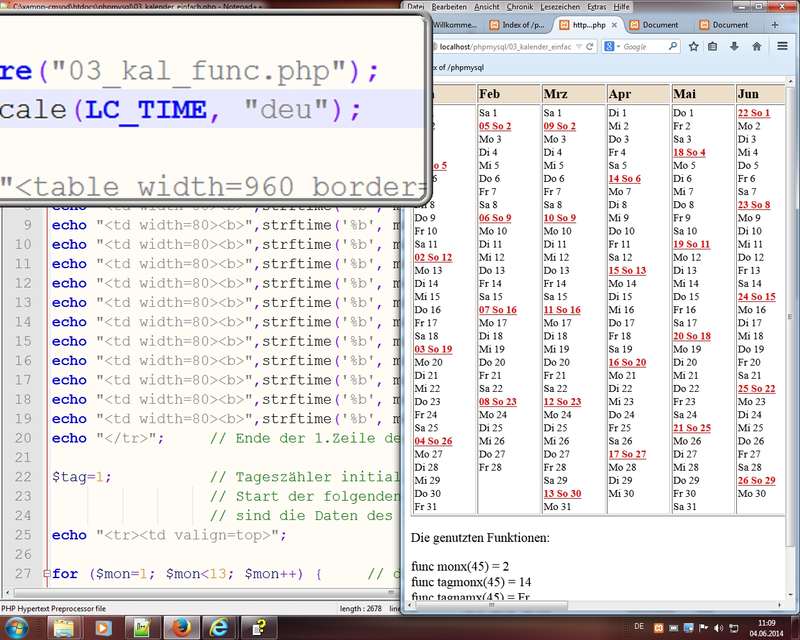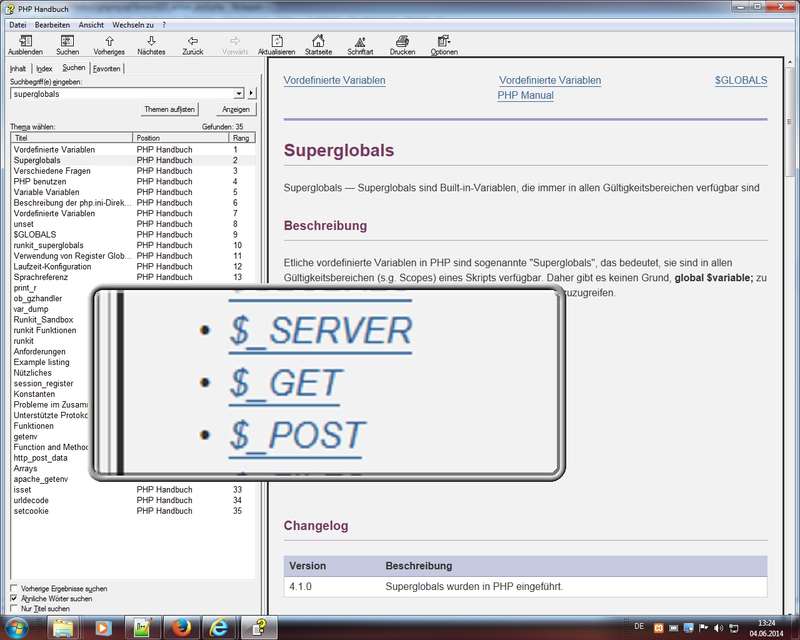 Aufruf der Online-Hilfe von PHP-Webportal php.net mittels Cursor in PHP-Wort und Alt + F1