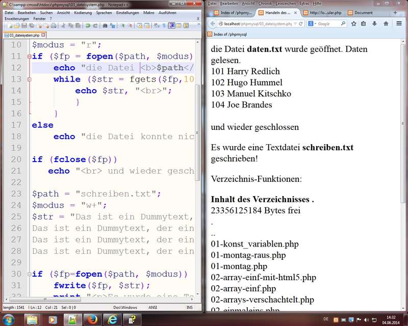 ausführliche (zeilenweise) Erläuterungen des Quellcodes und der genutzten PHP-Techniken (file, implode, list, explode, str_replace, Arraytechniken)