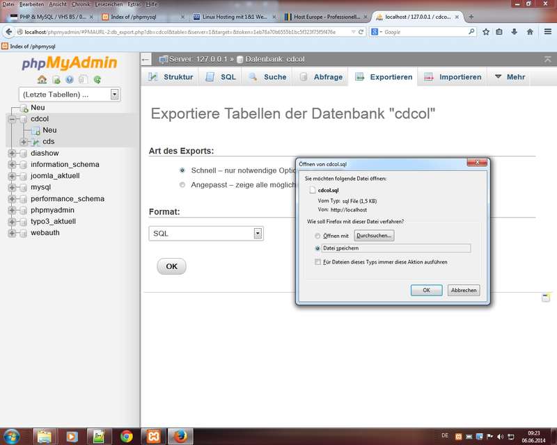 Anm.: beachten Sie, dass die meisten Hoster nicht das Zurücksichern (importieren) ganzer Datenbanken erlauben, dann sollten Sie auf Tabellen-Ebene "dumpen"
