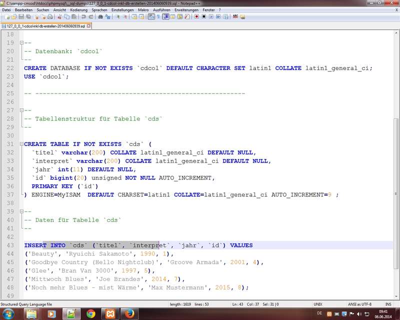 2) Datenbank und deren Tabellen (Struktur + Daten) - hier helfen jetzt Dumps: - MySQL Dumps (Backups für Datenbanken / Tabellen - Importieren / Exportieren)
