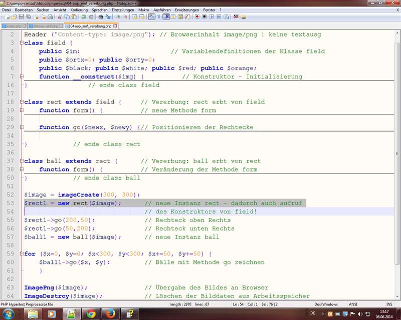 Hinweis: wieder dt. Handbuch (Manual) nutzen für Erläuterungen der OOP-Techniken (Klassen und Objekte)