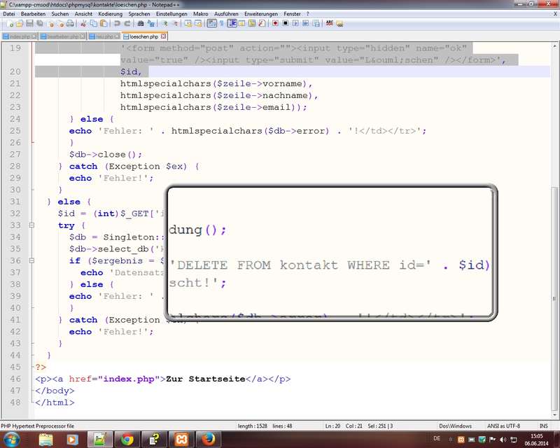 Programmierung der Beispielanwendung Kontakteverwaltung mit der API MySQLi stattMySQL; wichtig da ext/mysql ab PHP 5.5 deprecated; beachten das "i" macht den Unterschied (i wie improved - verbessert) - ...tbc...