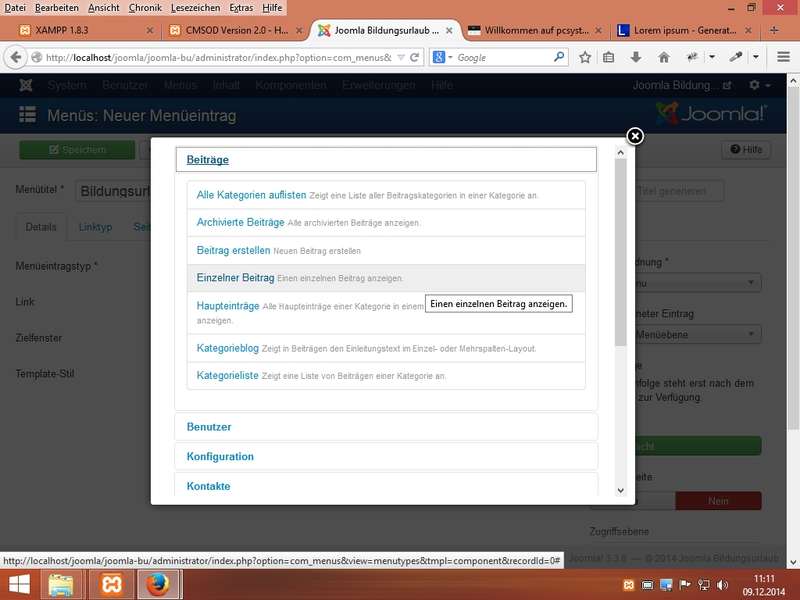 Anlegen von Beispielbeiträgen für bestehende Kategorie "Joomla";
