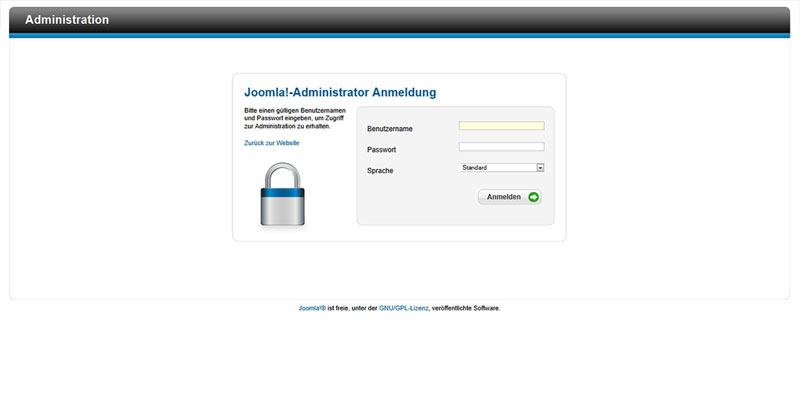 Abschließend noch eine kleine Entscheidungshilfe, um mal schnell herauszufinden, welche Version auf Ihrem Webportal installiert ist: eine kleine Galerie der Standard-Logins in das Backend der Joomla-Installationen.