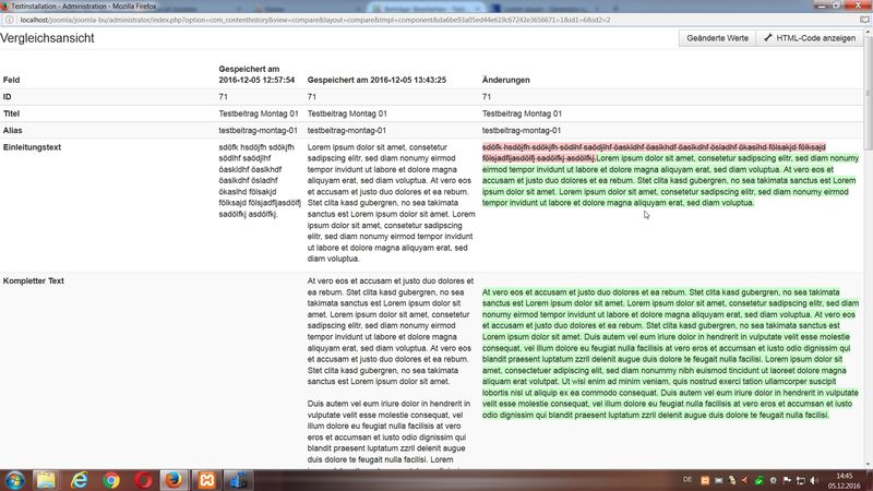 Joomla kennt die Verwaltung von Versionsverläufen für Beiträge - es können also gespeicherte Vorversionen der Beiträge beim Editieren ausgewählt und verglichen werden