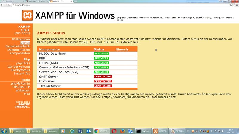 5) Starten von Apache Webserver und MySQL Datenbankserver