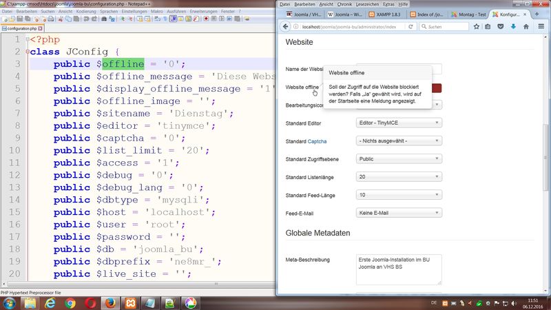 Übung: Ändern des Site-Titel in der Konfiguration und Aktivierung des "Offline-Modus" für die Website (Gründe: Installation von Erweiterungen, Joomla-Updates, Backups mit exaktem Status) - Versionen für Beiträge