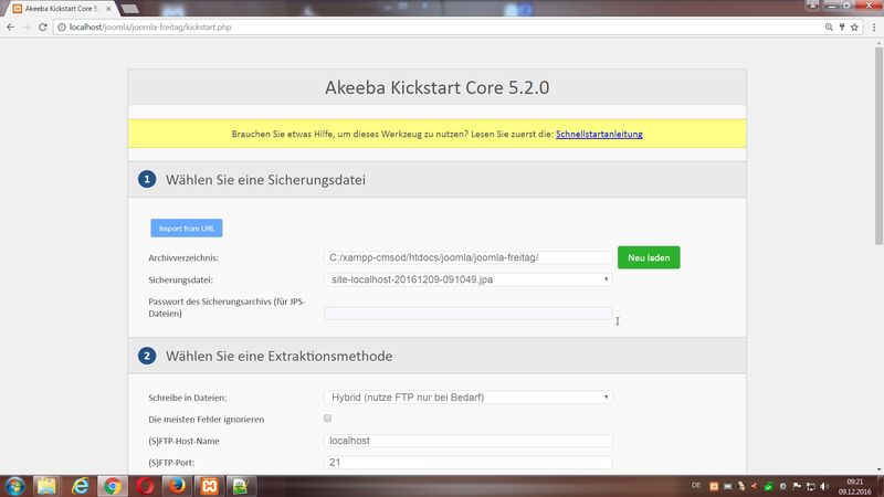 (Alternativen: a) FTP, b) Dateimanger im Hosting-Kundencenter - wir nehmen natürlich FTP)site-localhost-yyyymmdd-hhmmss.jpa,kickstart.php,jquery.min.js,json2.min.js,de-DE.kickstart.ini
