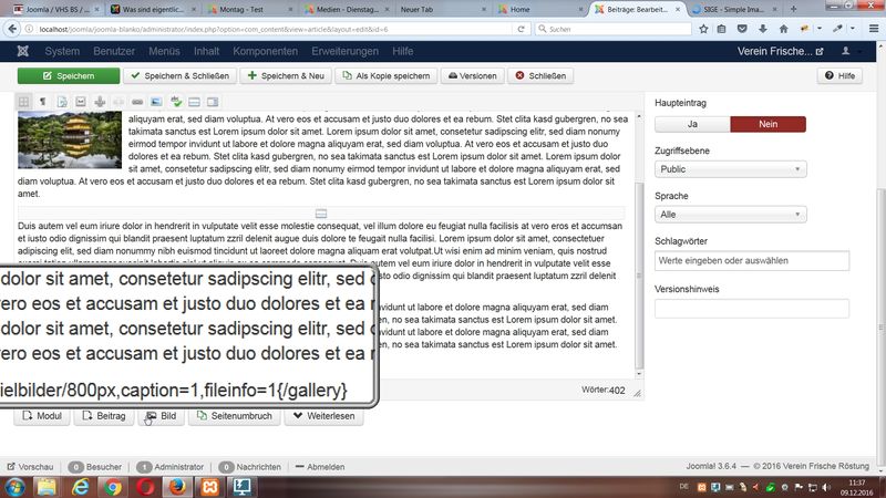 im FE angemeldet (Login-Modul) und somit die Beiträge und Module direkt bearbeiten