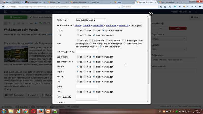 Beachten: häufig benötigt man dann auch noch weitere Module (Extensions) für eine komplette Umsetzung des "freien Templates" - SIGE - Simple Image Gallery Extended (PlugIn - Link JED)