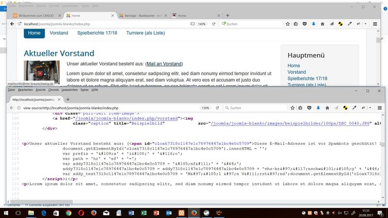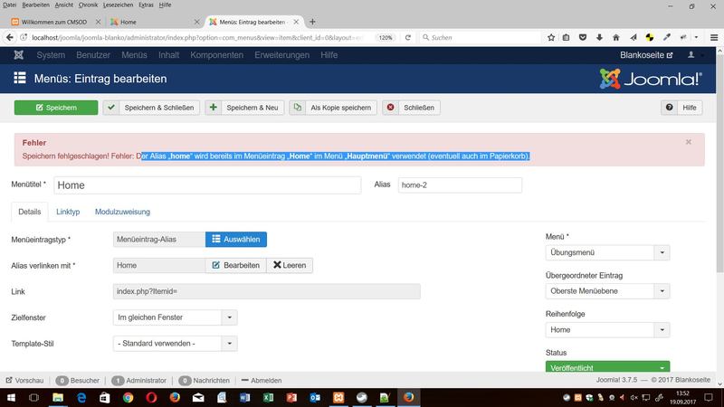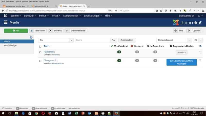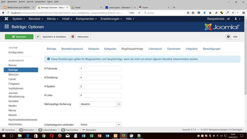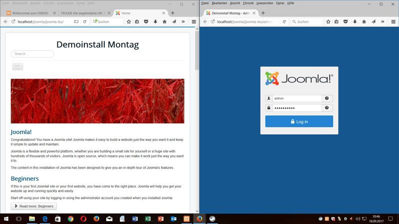 FE und BE aufrufen und Testen des BE-Zugangs (Adresse der Site plus Ordner/URL./administrator)