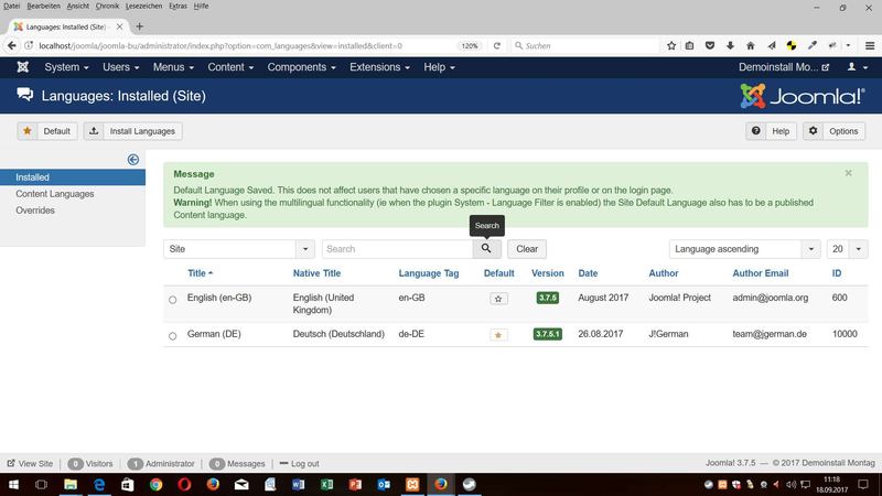 Das werden wir als Wiederholungsübung dann morgen durchspielen und über die Woche als Joomla-CMS sauber mit Inhalten füllen und pflegen! - Sprachen für Frontend (Site) und Backend (Administrator)