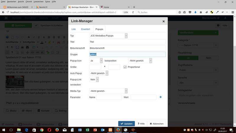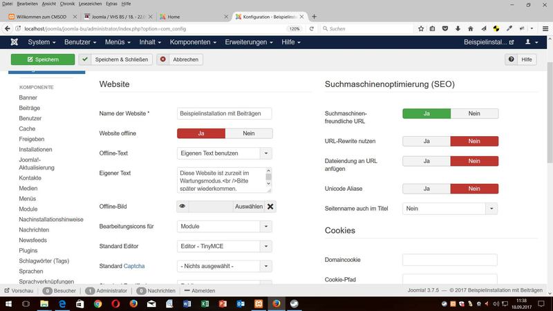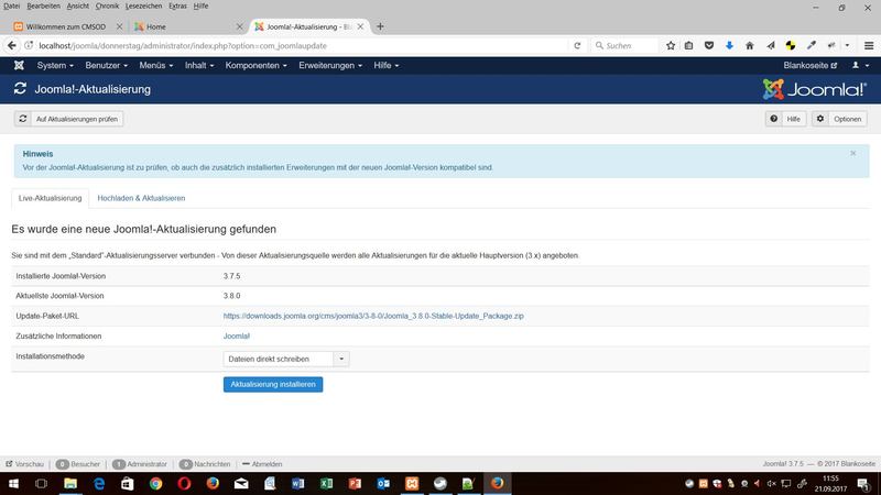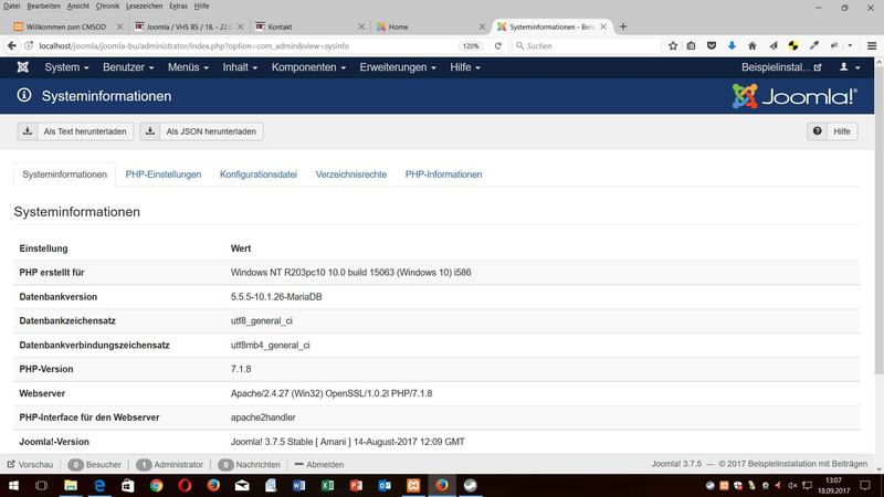 Version 3.7.5 zum Seminarzeitpunkt die aktuelle Joomla-Version (→ Seminarversion Version 3.7.5)