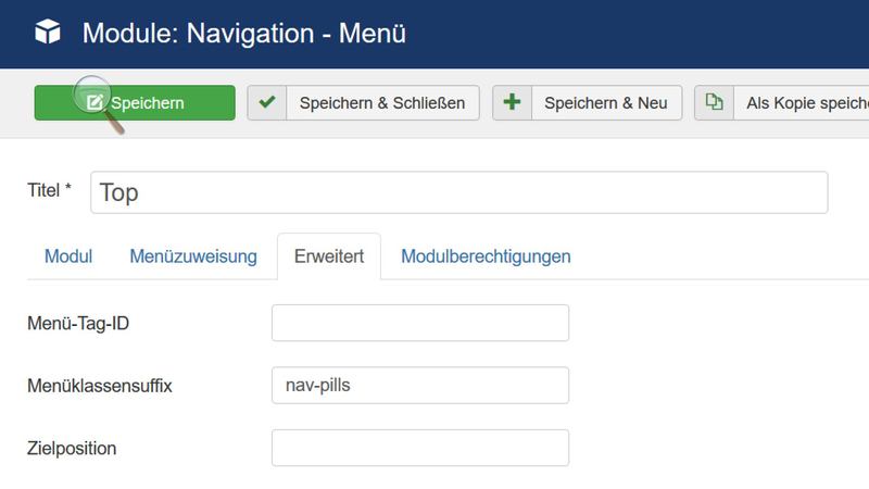 Hier: Modul-Positionen anpassen und bei Menü-Modul auch ggf. auch erweiterte Eigenschaften einstellen (Menüklassensuffix, Modulklassensuffix)
