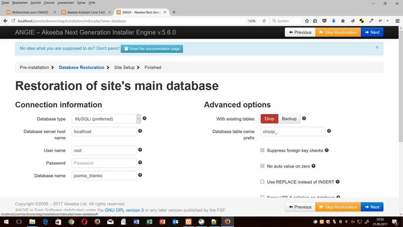 Übertragen und Wiederherstellen der Ornder und DB beim Hoster mittels Akeeba Kickstart