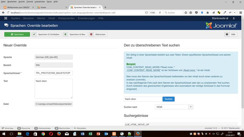 Wirkung: siehe Suchbox "Search..." wird zu "Suchen..." und Link "Back to Top" wird zu "Nach oben"