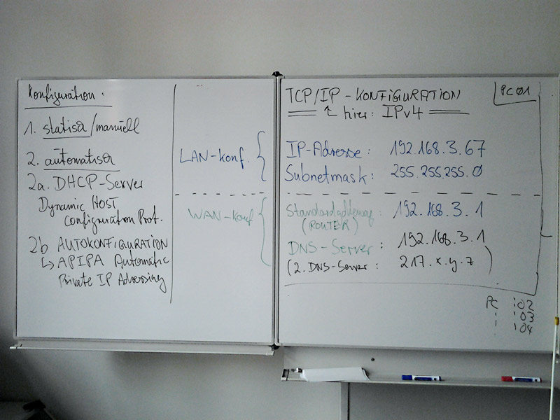IP-Adresse, Subnetmask, Standardgateway (Router), DNS-Server
