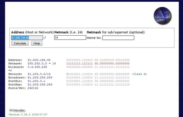 Beispielrechnung: 81.200.194.40 / 255.255.192.0 bwz. 81.200.194.40/18
