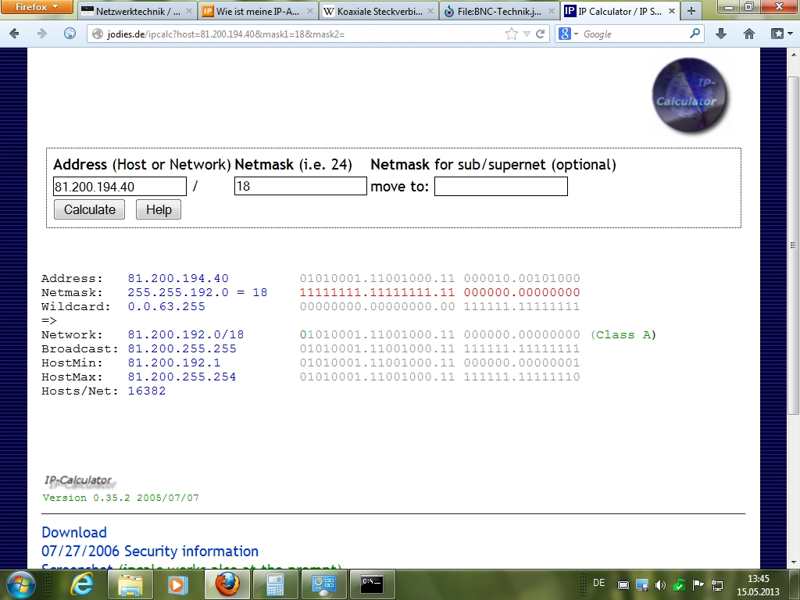 Beispielrechnung: 81.200.194.40 / 255.255.192.0 bwz. 81.200.194.40/18 (CIDR Schreibweise - Classless Inter-Domain Routing)