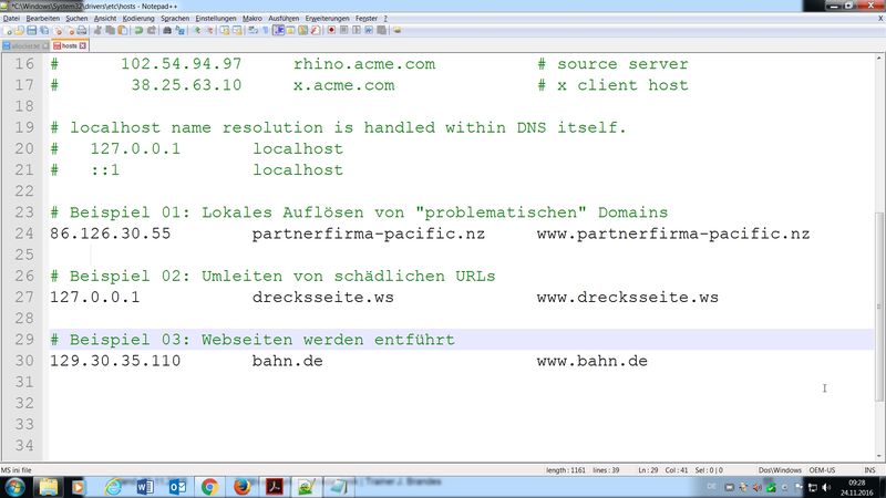 im Gegensatz zu anderen Seminaren im Rahmen des FITSN halten wir uns hier eher an die Vorgaben/Reihenfolgen im begleitenden Herdt-Skript "Netzwerke - Grundlagen" (Matchcode: NW; 10. Auflage September 2016), damit die Teilnehmer den häufig erst einmal theoretischen Ausführungen und Darstellungen besser folgen können. - Hinweis zu Online-Recherchen