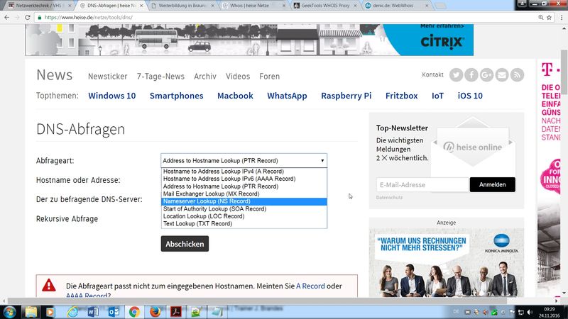 Tipp:netstat -an(zeigt die entsprechenden lokalen und remote Adressen und Ports) - Dynamisches DNS (Wiki Link)
