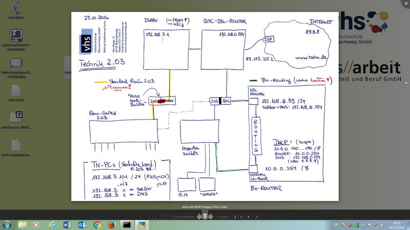 Dokumentation gezeigt ("Raumplan") mit Verschaltungen / Netzwerkinfrastruktur / Netzwerk- und Rechneradressen - NAT-Routing (Network Adress Translation bei IPv4)
