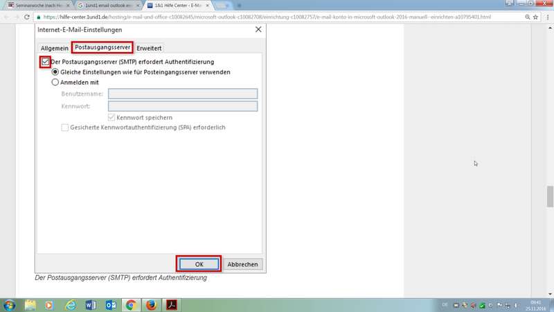 Sicherheit bei der Nutzung, Konfigurationen für den Client Outlook, Authentifizierungen mit Benutzername und Passwort für Posteingang und natürlich auch für den Posteingang gefordert (Stichworte: Offenes Relay; SMTP after POP) - ISP Zugangstechniken (Internet Service Provider)