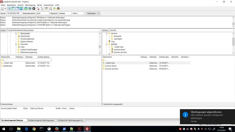 Beispiel: FileZilla mit Filezilla Server gezeigt