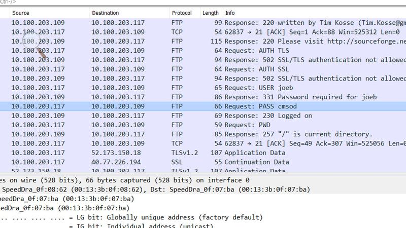Sicherheitsanalyse mit Tool Wireshark (früher Ethereal) zum Nachweis, dass die Benutzerdaten (ohne Verschlüsselung) im Klartext durch das Netz gehen; Empfehlung daher: Secure FTP (eigentlich SSH - Secure Shell)
