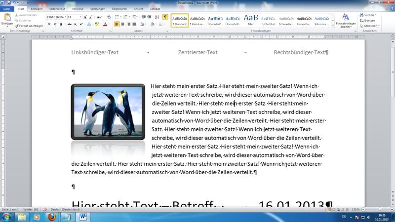 alternative TabStopps: zentriert und rechtsbündig - Beispiel an Hand der Kopf-/Fußzeilen - Bilder (bzw. ClipArts)