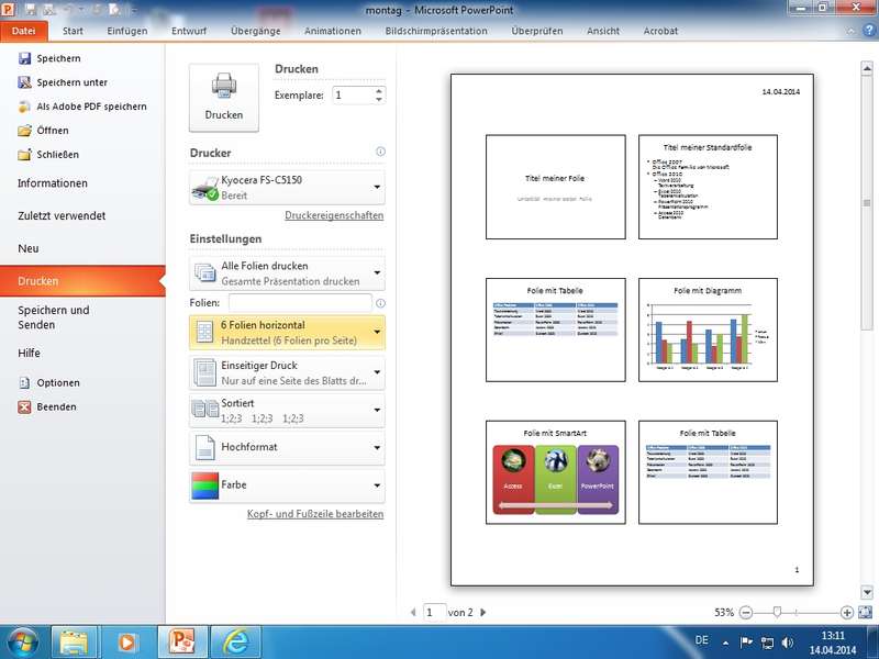 - Erstellung von Overhead-Folien, Bildschirmshows, Handouts