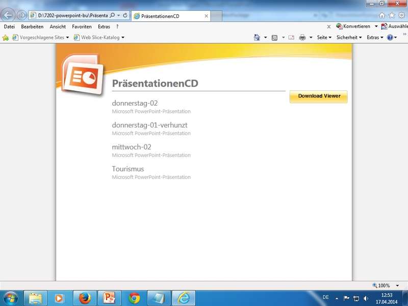 Übung: mit PowerPoint 2010 im abwärtskompatiblem *.ppt Format; Hinweis auf Kompatibilitätsprobleme