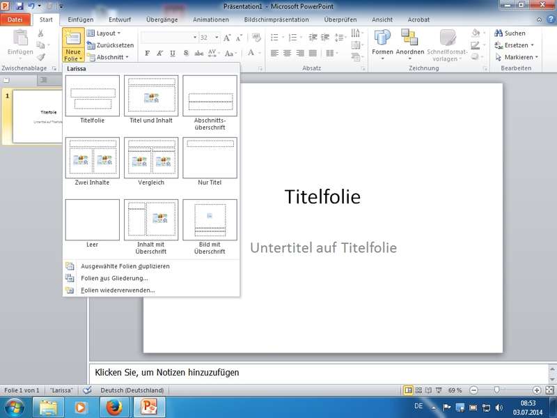 Anm.: dasselbe Prinzip bei Word (*.doc vs. *docx) oder Excel (*.xls vs. *.xlsx) - Inhalte in Folien eingeben