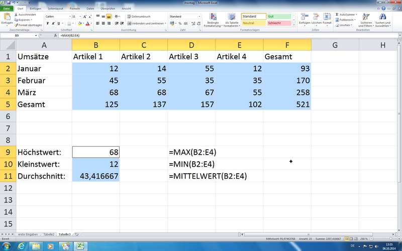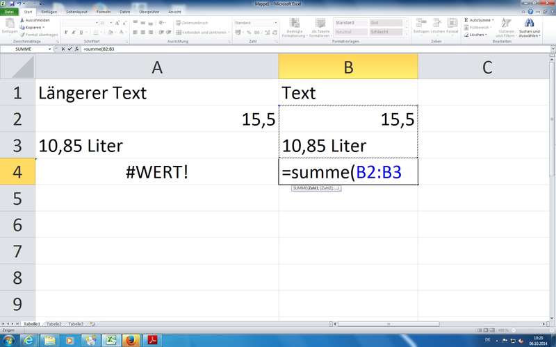 am Beispiel SUMME(); Eingabe mittels Maus und/oder Tastatur
