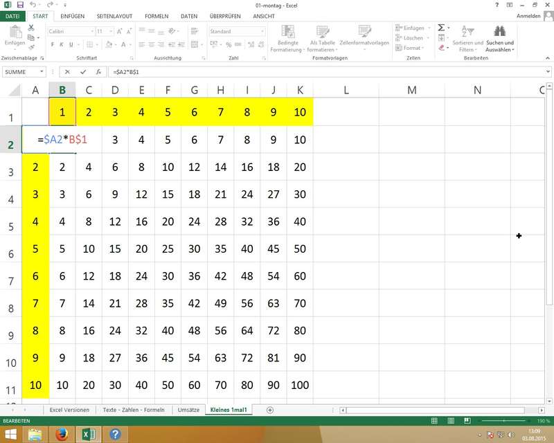 Übung: gemischte relative/absolute Zellbezüge bei "kleinem 1-mai-1" - Als Tabelle formatieren... (mehr als nur "schön designte" Tabellen)