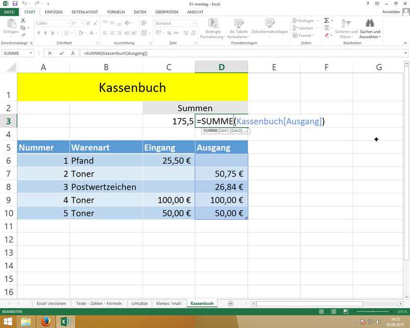 am Beispiel SUMME(); Eingabe mittels Maus und/oder Tastatur