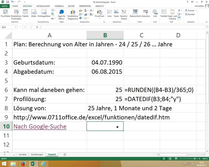 RUNDEN() und die Alternaitven ABRUNDEN(), AUFRUNDEN() - DATEDIF (Beispiel für versteckte Funktion in Excel)