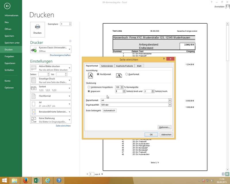 Manuelles Festlegen der Druckbereiche mittels Ribbon Seitenlayout; Schnelle Ausdrucksoptimierung druch Hoch-/Querformat wechseln