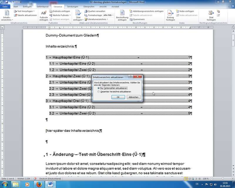Tipp: Feldfunktionen aktualisieren mit F9, oder natürlich Rechte Maus - Feldfunktionen aktualisieren